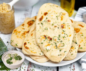 Garlic Naan Butter Made from wheat flour, garlic, butter, raita