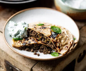 Lamb Paratha Filled with lamb minced meat, butter, raita